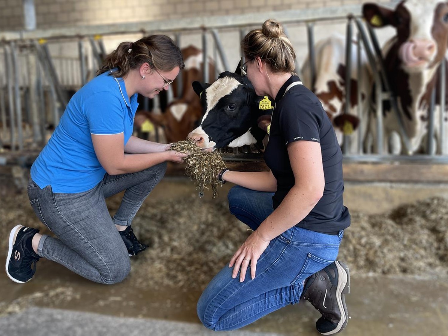 Na de biestperiode krijgen de stierkalveren koemelk en de vaarskalveren krijgen kalvermelk van Flink. Gedurende de melkperiode krijgen de vaarskalveren ruwvoer en Flink TMR krachtvoer aangeboden. Zo gauw de vaarskalveren van de melk af zijn, krijgen ze ruwvoer en krachtvoer volgens het melkveerantsoen dat is uitgerekend in samenwerking met bedrijfsadviseur Eefke Janssen van Victoria Mengvoeders. Voor advisering in de jongveeopfok kunnen Jan en Teun een beroep doen op Laura Surink van Flink. Dit bedrijf is opgericht door Fransen Gerrits BV. Flink voorziet de melkveeklanten van onder andere Victoria Mengvoeders van voer, advies en ondersteuning voor de kalveropfok. Flink werkt hierbij nauw samen met Kalfsupport, waarvan de kalveropfokspecialisten met name boven de rivieren meekijken over de schouders van melkveehouders. Ze bieden daarbij ondersteuning op managementniveau in de gehele kalveropfok. Van biestmanagement en voerstrategieën tot huisvesting en ventilatie. Specialisten van Flink en Kalfsupport wisselen graag kennis en ervaring met elkaar uit. Zo kan het gebeuren dat deze ochtend ook kalveropfokspecialist Eline Hoekstra van Kalfsupport bij de familie Gieben aan de keukentafel zit.